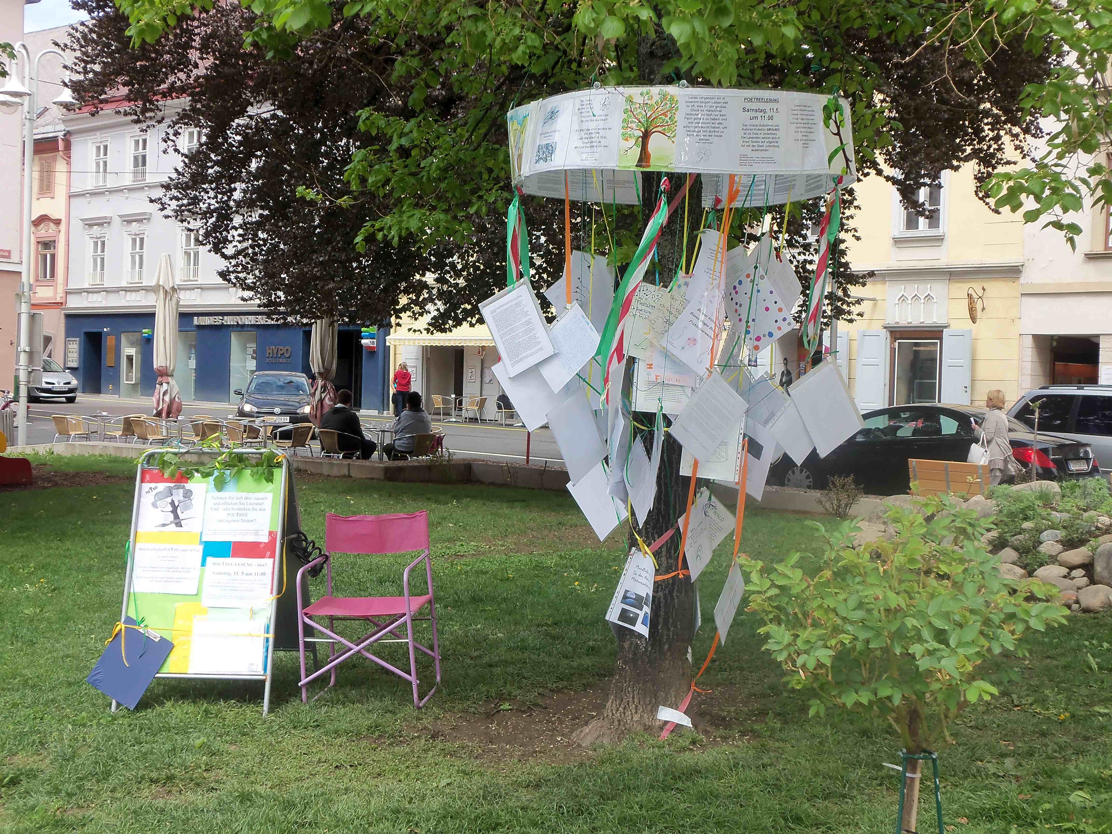 Wie ihr, als treue Leser dieser Seite natürlich längst wisst, hat Grauko die Literatur am Judenburger Hauptplatz Wurzeln schlagen lassen. Seit bald einer Woche steht nun dort der poeTree. Und er trägt schon Früchte. Was Grauko mit seinen poeTrüffeln genau vor hat, könnt ihr am Mittwoch ab 20.00 in der Brücke beim nächsten Improabend mit dem TiS erleben.