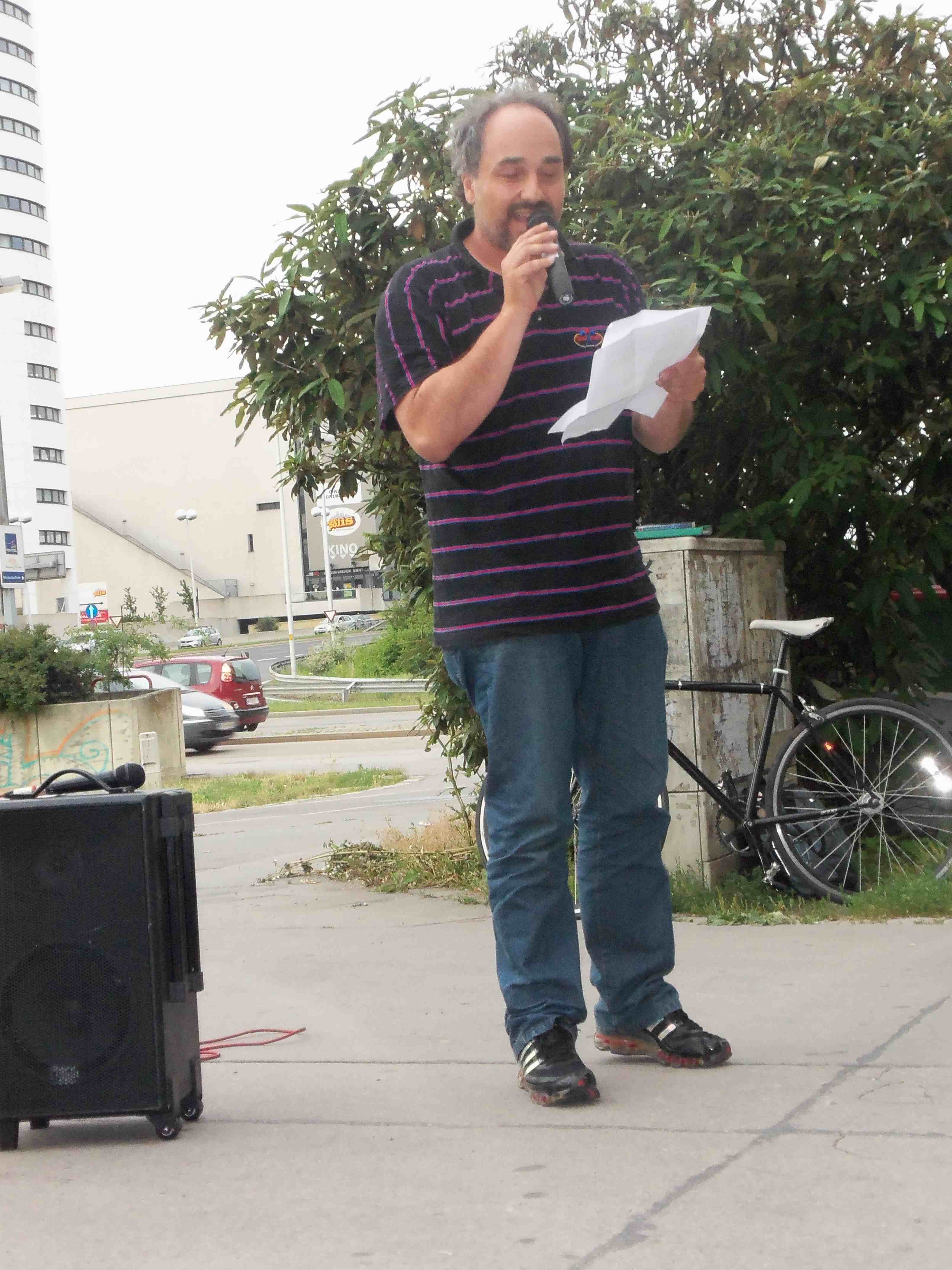 Der Bus/Bim-Slam ist eine 23-tägige Veranstaltung, bei der ab dem 1. Juni am Tag X im X-ten Wiener Gemeindebezirk je ein Poetry-Slam an einer Bushaltestelle stattgefunden hat. Bei der 22. Ausgabe in Kaisermühlen waren auch zwei Graukos am Start. Peter Heissenberger