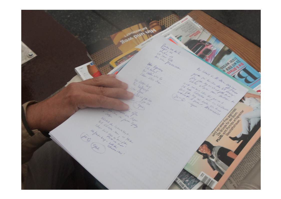 Nun, das Ergebnis seht ihr oben. Hatte der erste Regenguss noch den Anschein zurück gelassen, wir würden mit einer Verschiebung von einer halben Stunde durch kommen, was Kuno veranlasst hat, sich schon mal auf die Bühne zu setzen und seinen Regentext aus dem Gedächtnis niederzuschreiben. So fegte ein zweiter Schauer pünktlich um 5 auch die letzten Zuschauer vom Grazer Rathausvorplatz.