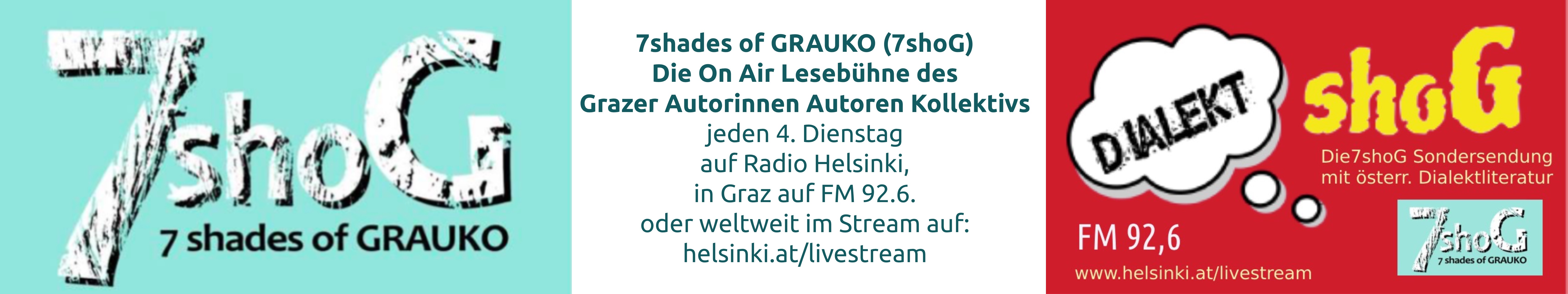 | 7 shades of GRAUKO Erstausstrahlung jeden 4. Dienstag #18:00-19:00# | 7 shades of GRAUKO Wiederholung Donnerstag – 16 Tage später 14:00-15:00# | DialektSHOG Sondersendung 4x im Jahr am Dienstag 18:00-19:00# |